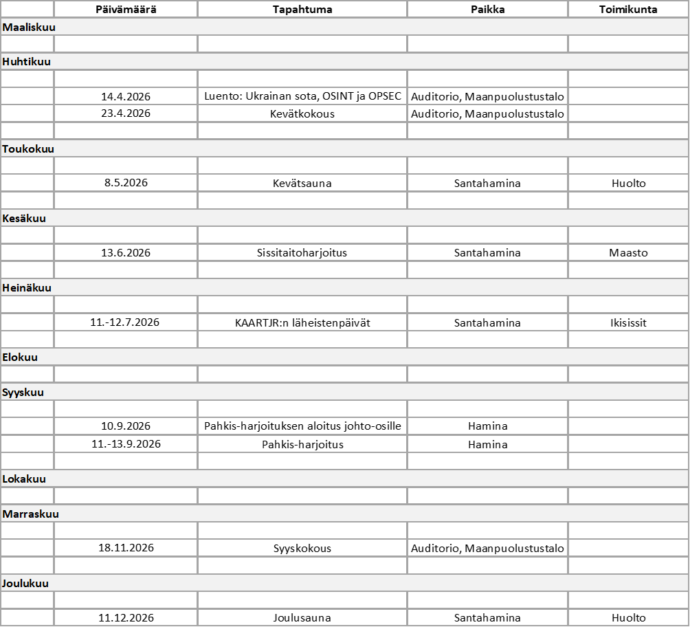 Kuukausittainen tapahtumakalenteri